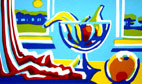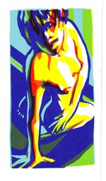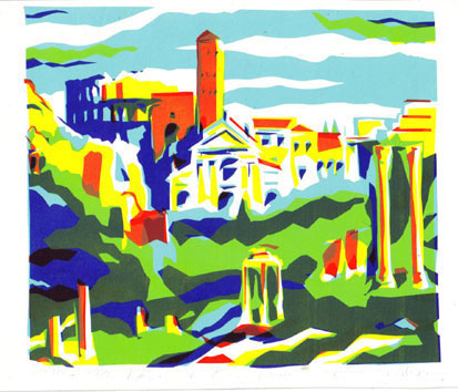 Zeefdrukken doe ik al heel lang. Het voorbereiden is een leuke, maar tijdrovende klus. Voor elke kleur snij ik een apart chabloon van die snijfilm. Het is een prachtige techniek die de kunst democratiseert. Het is met de hand ontworpen en gedrukt werk, origineel, maar doordat het in een beperkte oplage is, is het veel beter te betalen dan een schilderij of zelfs een tekening. Het is er al vanaf een paar tientjes. Kunst voor zelfs de kleinste beurs. Het liefst werk ik met snijfilm. Ik hou van de scherpe lijnen en hoeken die dan ontstaan. Daardoor heeft het wel wat weg van een houtsnede. Verkoop ik een schilderij of een tekening, dan hou ik er hooguit een foto van over. Zeefdrukken heeft voor mij het voordeel dat ik er altijd eentje zelf kan bewaren.